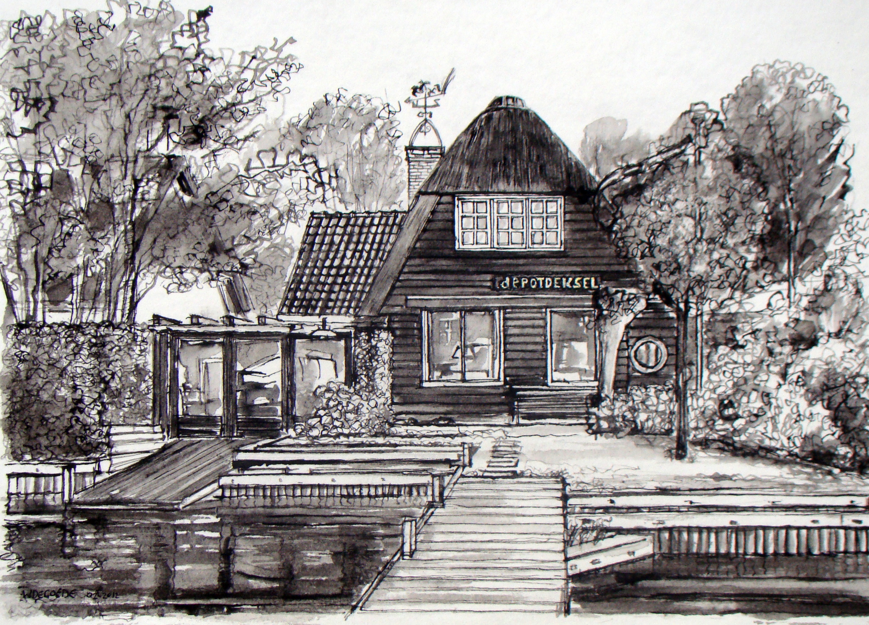 een mooie pentekening. Deze tekening kunt u ingelijst thuisbezorgd krijgen.